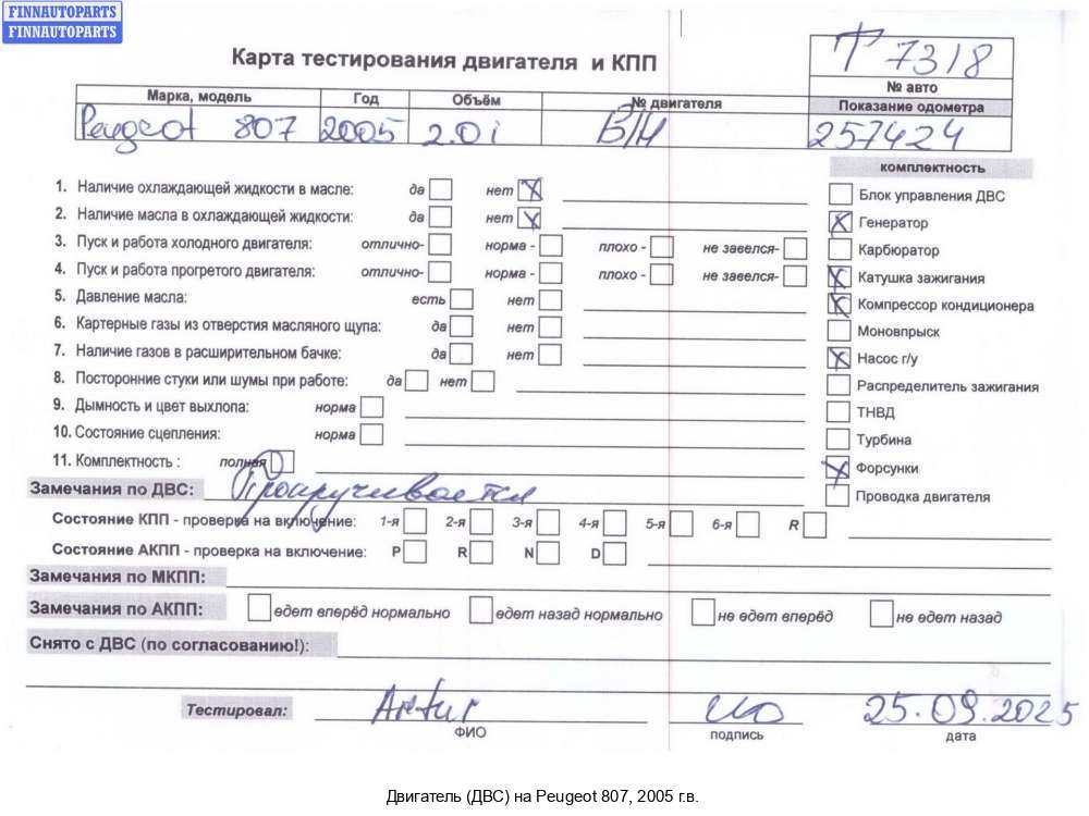 | Казань | 2007 | EW10A, кВт 103/140 л.с., тип: RFJ (EW10A), номер: PSA RFJ 10LH5B 1663449, пробег: 57877 км | |||